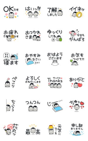 恋人や家族や友人との連絡にも!大きな文字で日常会話にも便利な、やさしく気づかいのできるペンギンの赤ちゃんたちのかわいいアニメーションスタンプです♪