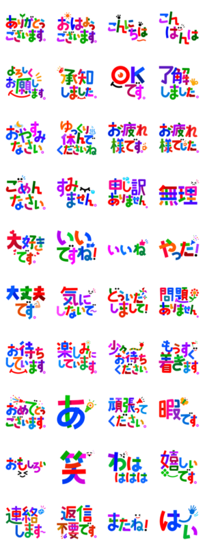 カラフルなデカ文字・日常会話スタンプのダウンロードはこちら↓