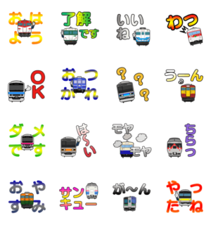 でか文字の電車スタンプです。鉄道大好きさん向けスタンプですFuture Design より発売
