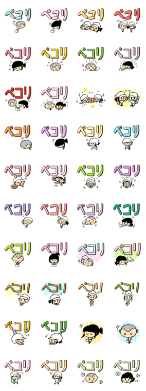 ペコリだらけの珍しいスタンプ。日替わりで使ってみると見どころあるかもしれません。