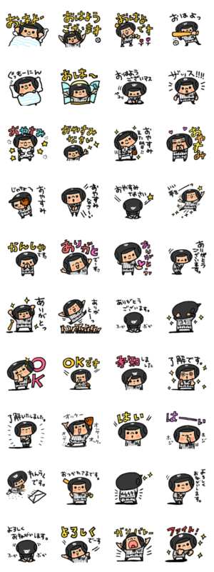野球大好きスタンプ。プロ選手、クラブチームや草野球、社会人、保護者に使ってほしい、使いやすい応援スタンプ。年中使えるスタンプです。イラストレーターtunスタンプ