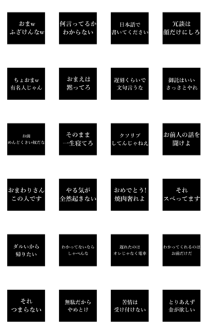 口が悪い会話の返信や連絡,挨拶,確認のタイトル画面の漫画アニメーション演出スタンプです。アニメやマンガ、ゲーム好き人向けに今日も1日フルスロットルで働きましょう!