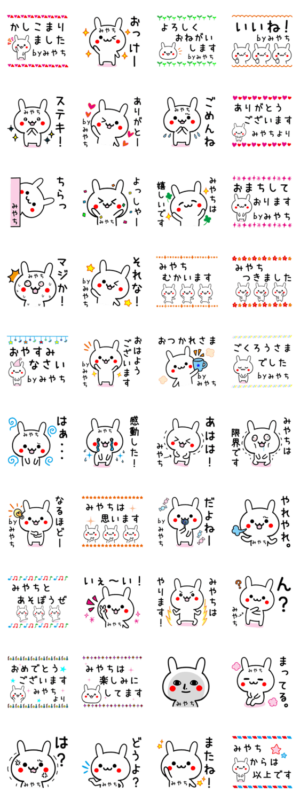 「みやち」が使えるウサギの名前スタンプです。みやち/ミヤチ/宮治/宮地鈴木ユウち より発売