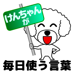 けんちゃん専用の日常会話でよく使う名前スタンプ。おはよう,おやすみ,ただいま,おかえり,OK,yes,no,了解,おめでとう。プードルのキャラクターで言い回しが特徴です。