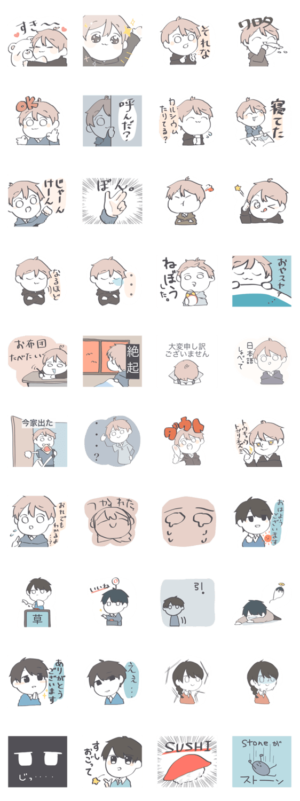ゆるい男子高校生2人のスタンプです!普段使いやすいスタンプ多めになってます〜かび より発売