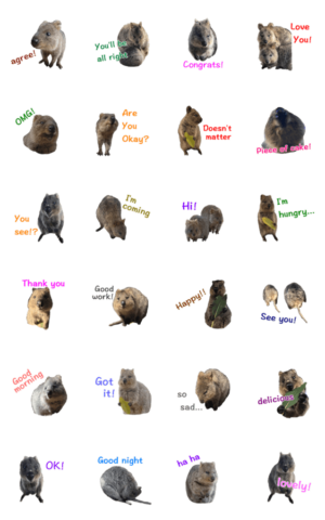 世界一幸せな動物といわれるクオッカ(クアッカ)のLINEスタンプが、あなたやあなたの友達の毎日に幸せを届けます。