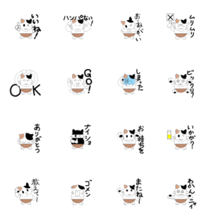 とても寒がりで腹巻を手放せない猫です。 ほのぼのスタンプとしてぜひお使いください。フンズ.マリオ より発売
