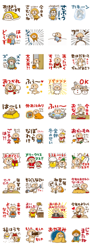 あなたに代わってストレートに気持ちを伝えるラッコさんの冬のスタンプ。寒い日や年末年始のイベントに使えます。satoco より発売