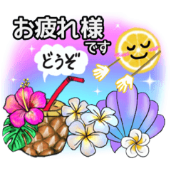 プルメリアとハイビスカスモンステラヤシの木と海が大好きなオシャレなレモンとパインです。お仕事や友達家族に毎日使える可愛いイラストとL文字で読みやすい敬語と丁寧語
