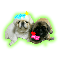 愛犬ペチャくんとペコちゃんのスタンプを作りました! ペチャは白の大人しい男の子、ペコは黒と茶色のフレンドリーな女の子、犬種は2匹ともペキニーズです♬Amimy より発売
