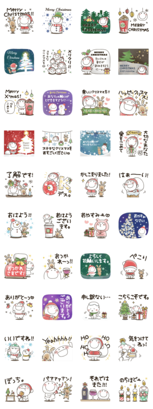メリークリスマス!まるぴシリーズの第34弾です。Merry Christmas のスタンプを16個と多めに、まるぴサンタが日常会話を盛り込みました。聖なる夜に、素敵なクリスマスを!