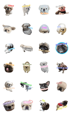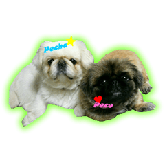 愛犬ペチャくんとペコちゃんのスタンプを作りました! ペチャは白の大人しい男の子、ペコは黒と茶色のフレンドリーな女の子、犬種は2匹ともペキニーズです♬Amimy より発売
