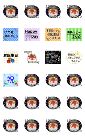 【まつこの◯月お祝い】5月17日から31日までのおめでとうスタンプ/記念日/お祝い/happybirthday/ケーキもあり/5月生まれ/恋人/お誕生日に送る/動く/ハッピーバースデーMatsuko2016.11 より発売