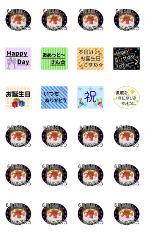 【まつこの◯月お祝い】6月1日から16日までのおめでとうスタンプ/記念日/お祝い/happybirthday/ケーキもあり/6月生まれ/恋人/お誕生日に送る/動く/ハッピーバースデーMatsuko2016.11 より発売