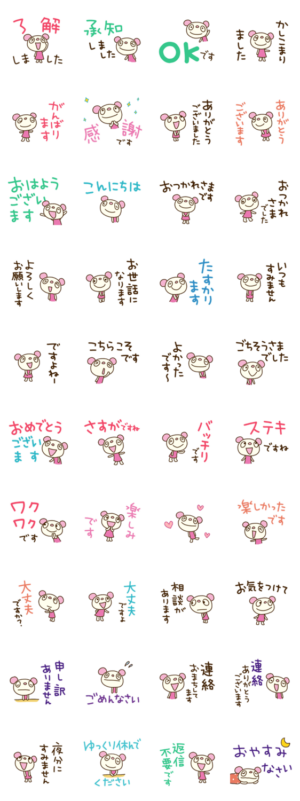 「てるてるうさぎ」シリーズより「てるてるぱんだ」第2弾。今回は敬語編。「承知しました」から「おつかれさまです」まで。丁寧な言葉で気持ちよくメッセージを伝えよう。