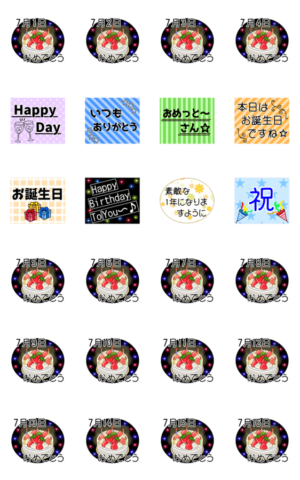 【まつこの◯月お祝い】7月1日から16日までのおめでとうスタンプ/記念日/お祝い/happybirthday/ケーキもあり/7月生まれ/恋人/お誕生日に送る/動く/ハッピーバースデーMatsuko2016.11 より発売