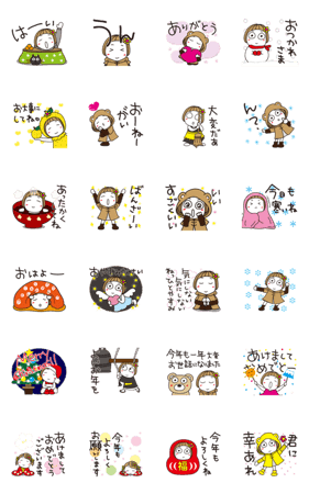 ほんわか明るいはな子ちゃんのスタンプで、寒い冬は大切な人に送って温めてあげれますね