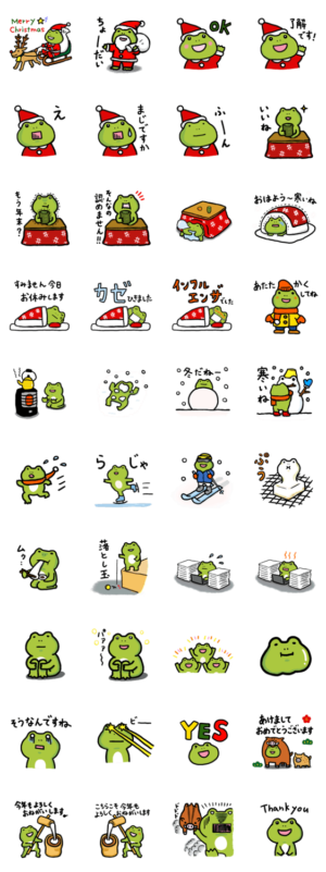 カエル好きのための、ほのぼのカエル「ぴーにゃ」のスタンプ第五弾です。冬に使いやすい、かえる盛りだくさんのスタンプです。かえる日和 より発売