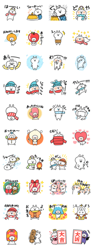 うさぎゅーんの使いやすい冬スタンプが登場!!!!!! クリスマス・年末年始・お正月に使えるスタンプも!!!!!! うさぎゅーんと一緒に楽しい冬をすごしましょ!!!!!!くおん より発売