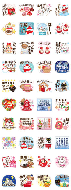 大人かわいい日常シリーズより冬〜春の寒い時期にほんわか温まるスタンプです。クリスマス、年末年始、お正月の年賀状、喪中ハガキ代わりにも♪受験生の合格祈願にも是非☆