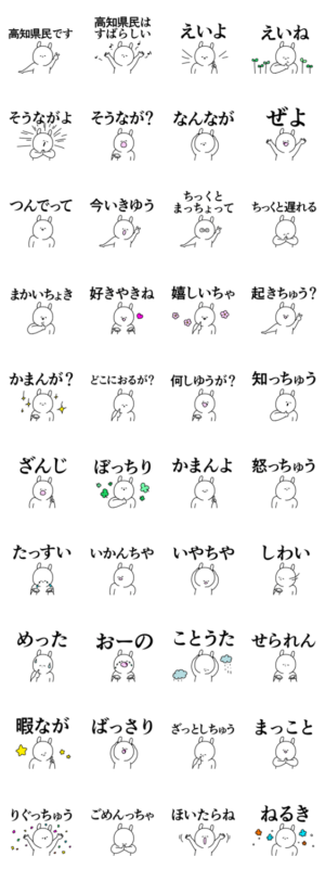 シンプルな絵の地方の方言スタンプ。大人も子供も海外の外国の人も便利に楽しい、出身地、懐かしい、少しシュール、全ての都道府県民/高知弁、土佐弁など/ナチュラル