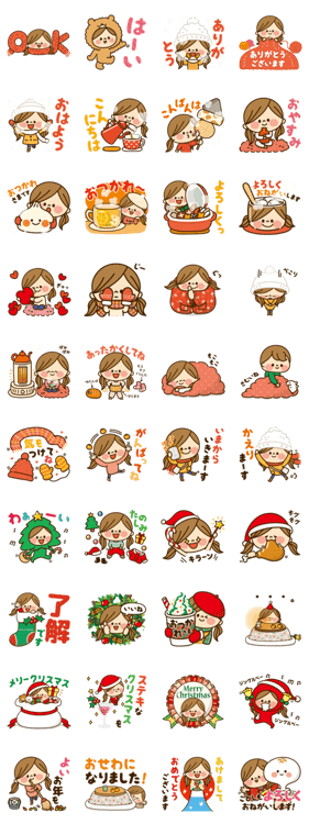 かわいい主婦の1日第36弾【冬でもあったか編】はかわいい女の子の寒い冬も温かく過ごせる、ぬくぬく♥ほっこり癒やし系スタンプです!クリスマス・お正月・年末年始にも!