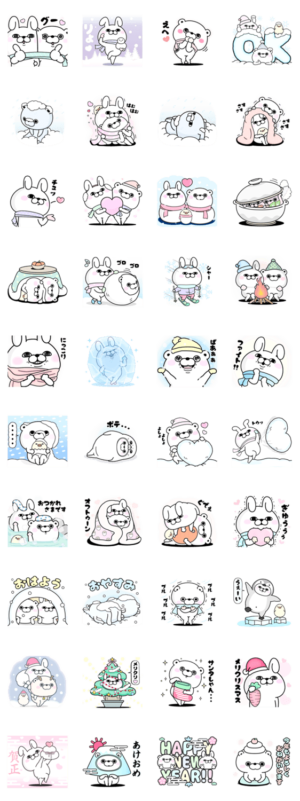 冬をエンジョイしているくまとうさぎのスタンプです。にぎやかなスタンプをラインに飾ってトークを盛り上げましょう!