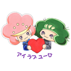卒業生がデザインした『向上心』『勇敢』を意味する松と『高潔』『忍耐』を意味する梅から生まれた双子の妖精さん。平成30年度PTA発案、生徒達の協力を得てスタンプ誕生!