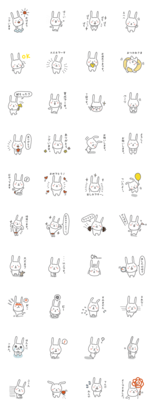 いろんなシーンで使えるうさっちい。 トークに添えてどーぞ。のりのりこ より発売