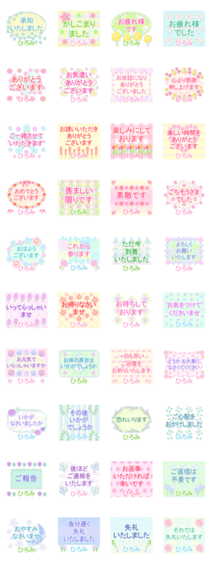 ひろみ・名前入り♪よく使う敬語♪花と柄 スタンプ画像一覧