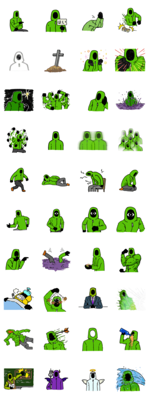 無表情マンことフーディのスタンプ第2弾。 表情もセリフもない分、なんかが激しいぞ。 言うほど狂気成分は高くない代わりに意味不明度と勢いだけで押し切るパワーが高い