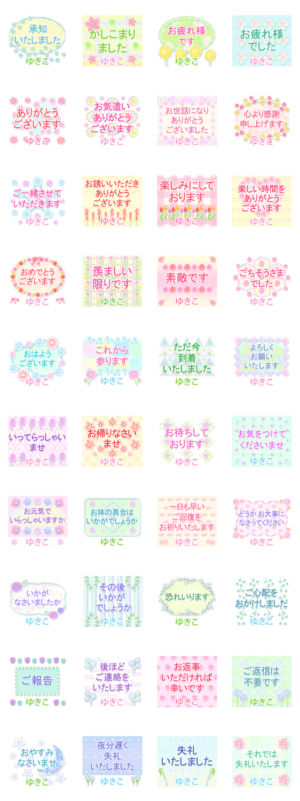 ゆきこ・名前入り♪よく使う敬語♪花と柄 スタンプ画像一覧