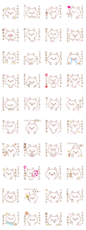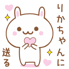 ともだち、家族、恋人など、大切な「りかちゃん」へ送る、ウサギの名前スタンプです。りか/リカ/梨花/里香/理香/梨華/梨香/利香/梨加/りかこ/りかえ