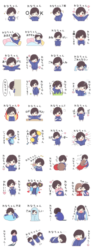 【れなちゃん】に送る専用ジャージくん スタンプ画像一覧