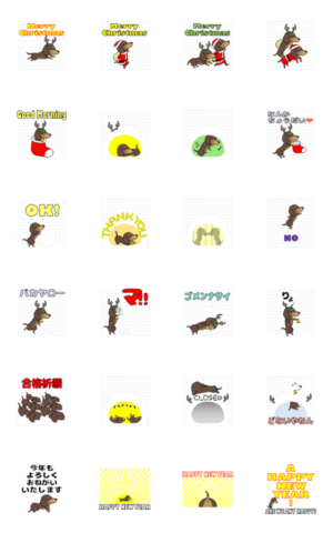 「激しく尻尾をふるイヌ」シリーズ。クリスマス、ハッピーニューイヤー、合格祈願を含んでいます。