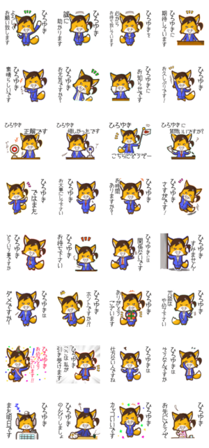 ゆっけ。が贈る【ひろゆき】に『送る用』名前スタンプ23です。友達とのやりとり等に。《ゆっけ。のアニぱ!》07「きつねのてんくー姉妹・妹くーこ」です。
