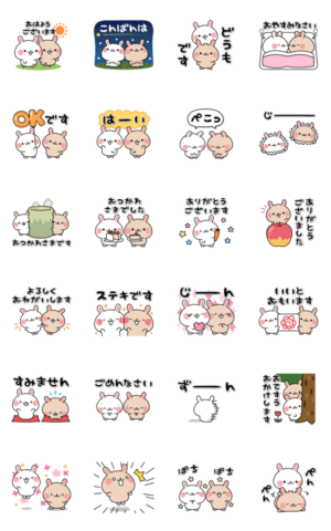双子のウサギがかわいい、上司や先輩など目上の人との会話に便利な敬語のアニメーションスタンプ。もちろん家族や恋人、友達との日常会話にも便利♪DECOR より発売