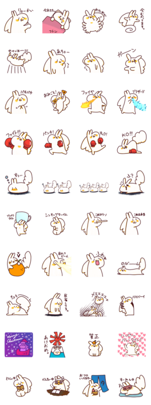 うさぎと犬のハーフ、きなこもちのスタンプ第3弾。年末年始に使えそうなものも作ってみました。