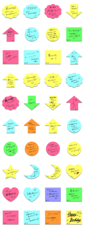 おりこ(オリコ)さん専用ふせん(付箋)スタンプ。ペンでささっと書いたメッセージで気分もほっこり。カラフルで敬語丁寧語が多めで仕事でも使えます!