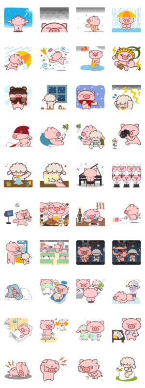 ぶたたとめーたが日々のあれこれをあれやこれやするスタンプの第2弾です。decosmith より発売