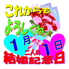 1月の結婚記念日お祝いスタンプver.1です。 限定感があるスペシャルバージョンでパートナーに喜ばれますよ。/wedding/毎年使える/結婚記念日/大切な人/かわいい/記念日
