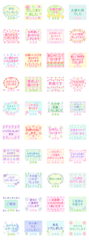 かすみ・名前入り♪よく使う敬語♪花と柄 スタンプ画像一覧