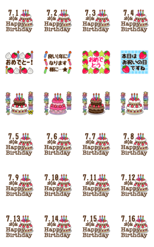 祝いたい生まれ月を入れて【まつこの◯月お祝い】で検索。7月1日〜16日お誕生日を祝うスタンプ/ハッピーバースデー/happy birthday cake/ケーキ/に贈る/送る/動くMatsuko2016.11 より発売