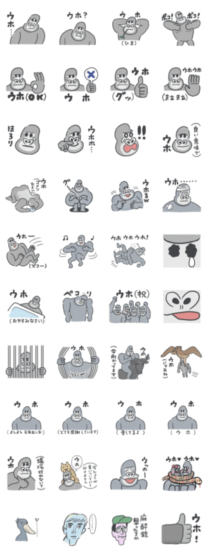 ゴリラの悲しみを川柳にしてお届けしている悲しみゴリラ川柳のゴリラがスタンプに! 哀愁あるゴリラのひたむきなスタンプです。室木おすし より発売