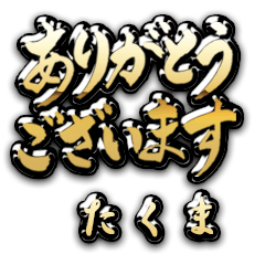 たくま(タクマ)さん専用、黄金の筆文字スタンプ。キャラなし、デカ文字、ゴージャス。友達、ママ友、仕事で使えるソフトなあいさつ、敬語、丁寧語満載!JK語も収録。イッレ・コスヤ より発売