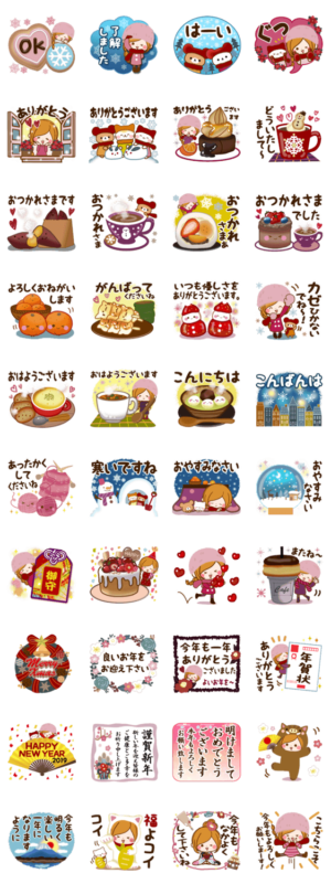 冬から春へ向かって使える、寒い季節にぴったりのスタンプです♪年末年始のご挨拶ももちろん♥気づかいのある日常会話スタンプで、毎日を明るく楽しくします☆