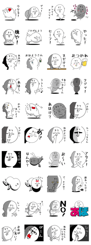 【極悪人】第2弾。口が悪いマリちゃん。まりこ,まりえ,まりな,まりの,まりか,マリオ,マリン,マリアさんに。関西弁【大阪弁】。毒舌ですが愛のある名前スタンプです。naka より発売