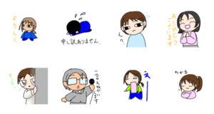 パソコンのペイントソフトでらくがきしたような見た目のスタンプです。