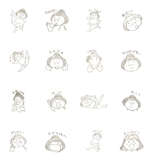 いえーい、エイエイオー、ルンルン、ナイス、暇、幸せ、了解、反省、ダイエット、頑張る、風邪、何、バレリーナ、眠い、眠い、はーい、ワイルド、関取、お相撲さん、もち肌junzo より発売