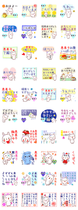 恵美子2●正月と毎日言葉■でか文字名前 スタンプ画像一覧